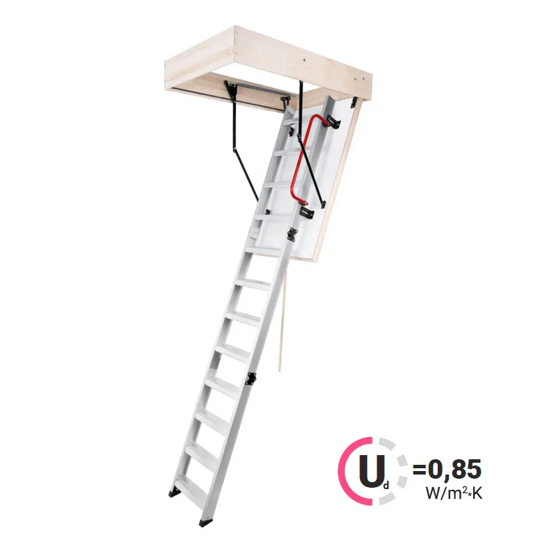 Благодаря «ножничной» системе складывания в сложенном виде лестница LSF очень компактна, и соответственно имеет небольшой размер крышки люка. Специальный механизм регулировки угла открывания крышки люка позволяет подогнать высоту лестницы под высоту потолка.
