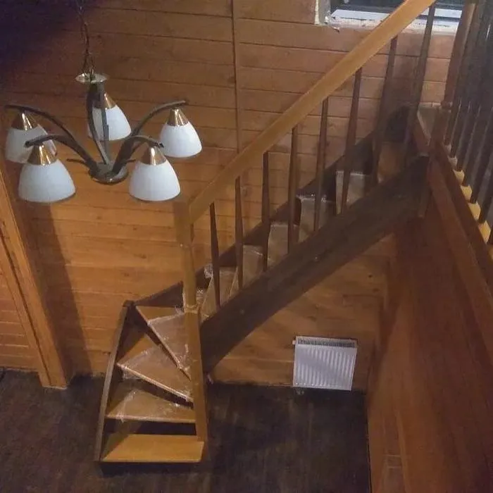 Удобная поворотная лестница на второй этаж. Дополнительные ограждения по первому маршу обеспечивают безопасность при подъеме и спуске, кроме того, небольшой угол подъема открывает всю площадь ступеней. Монтаж осуществляется силами двух человек на объекте по указаниям, приведенным в паспорте на лестницу.