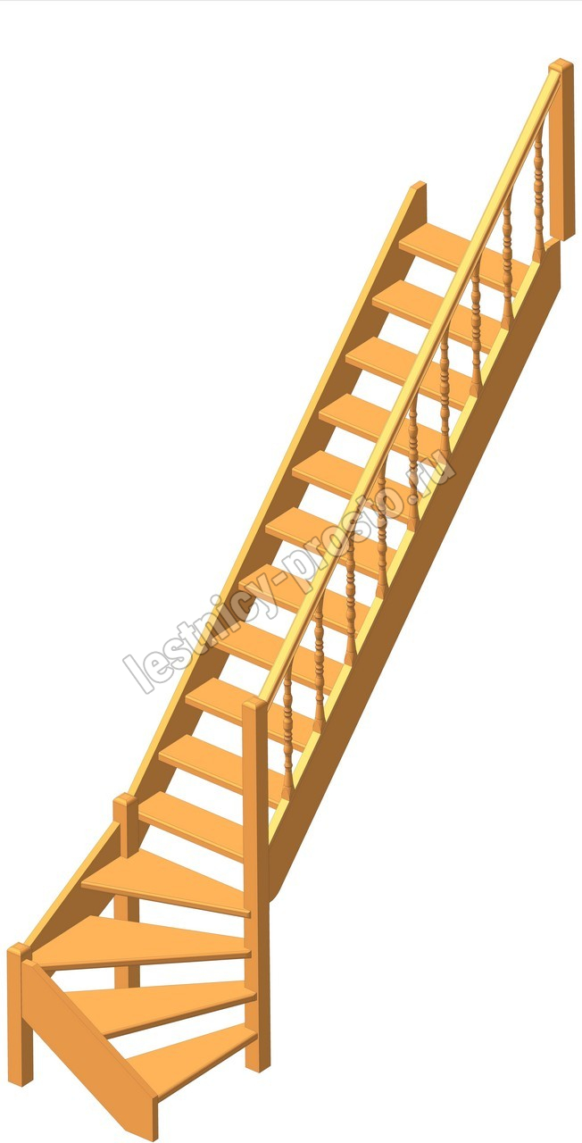 Деревянная межэтажная лестница ЛЕС-07 3085-3290 проем 2930-830, Сосна