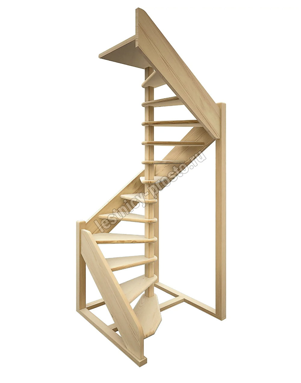 Лестница выполнена из древесины хвойных пород 8 % влажности.