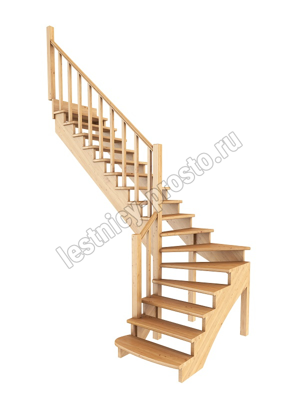 Базовый комплект включает в себя деревянные элементы лестницы и ограждения без какого-либо покрытия.