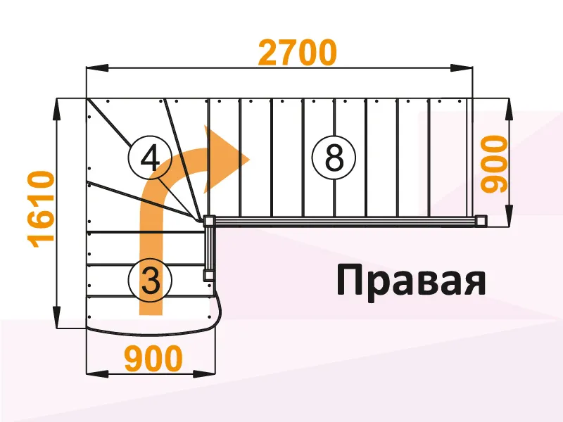 Лестница К-001М/4 с поворотом направо