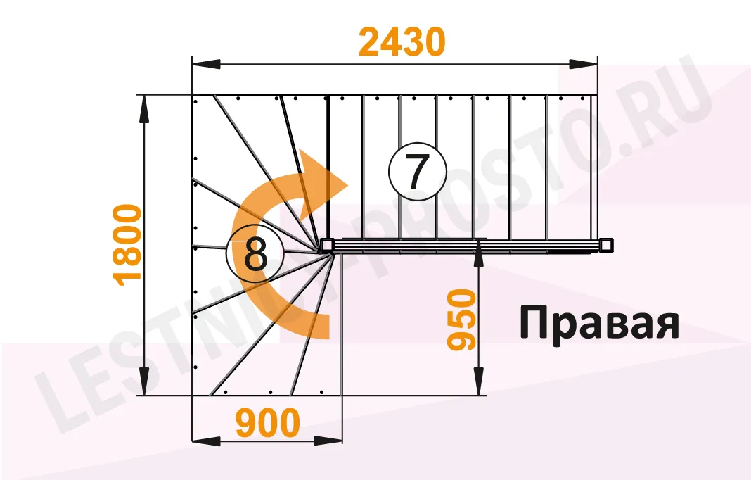 Схема лестницы К-003М/5 с поворотом налево