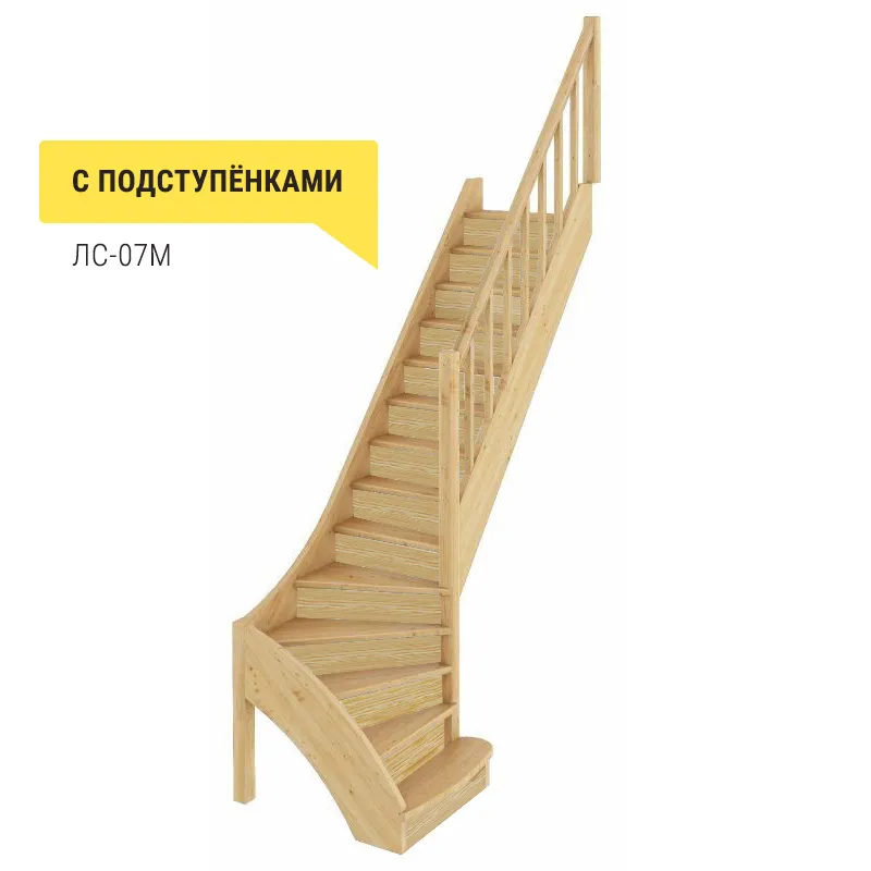 Базовый комплект включает в себя деревянные элементы лестницы с подступенками и ограждения без какого-либо покрытия.
