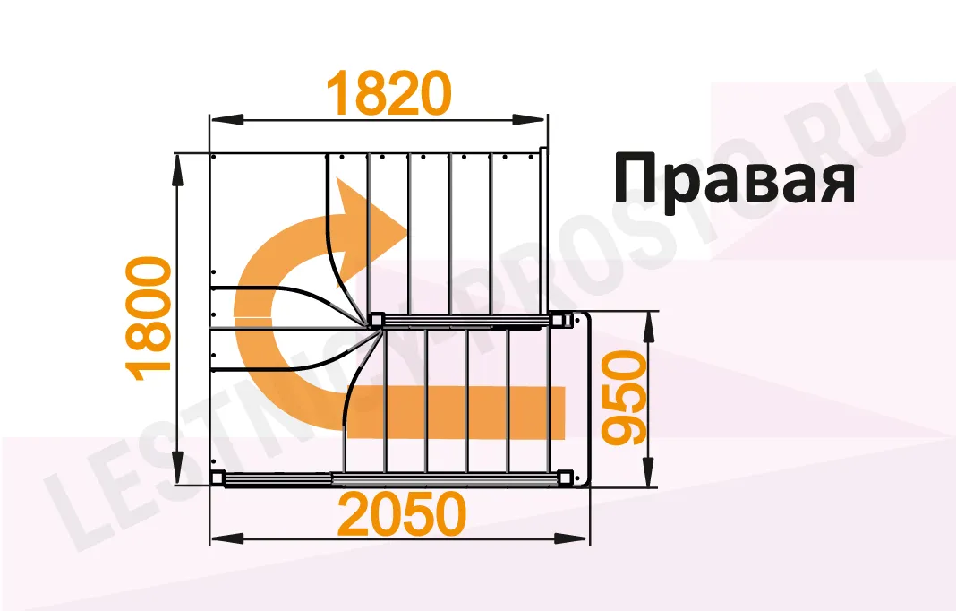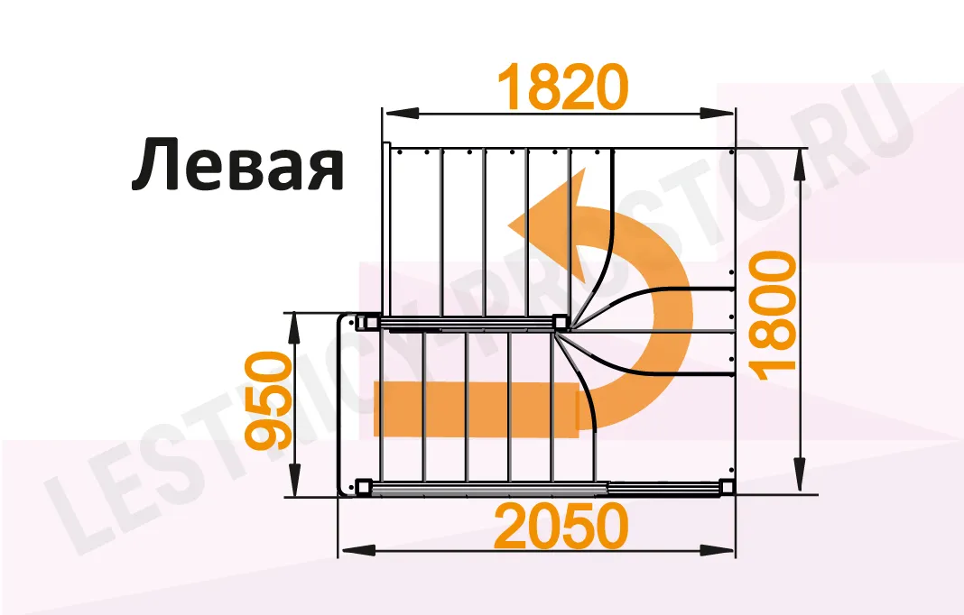 Ограждение у лестницы с обеих сторон (снизу до поворота)