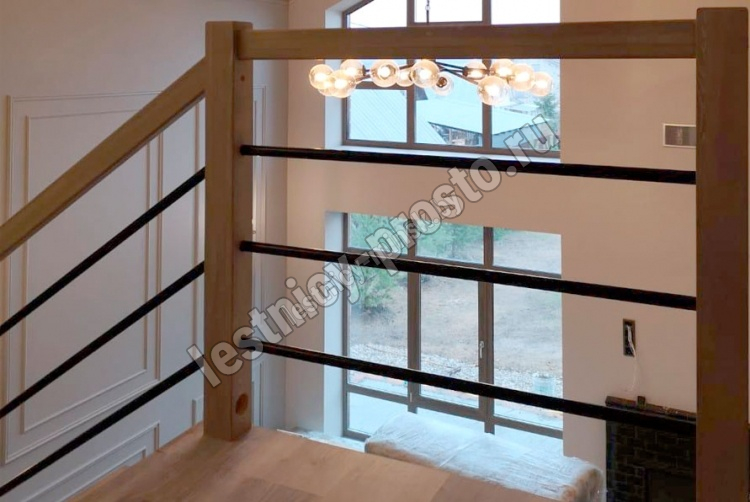В комплекте: столбы и профильный поручень из бука без покрытия, комплект из 3 стальных ригелей (окрашены в цвет каркаса или хром по желанию) диаметром 12 мм. Ограждение начинается с пятой ступени.<br>