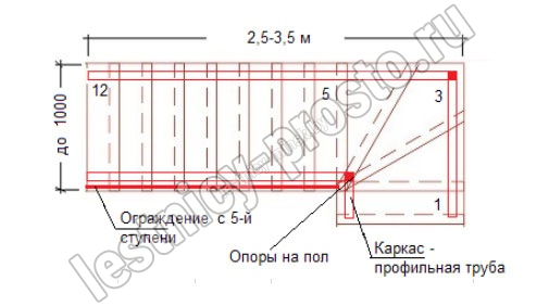 Комплект ограждений подходит для г-образной лестницы на металлокаркасе PROSTO DUE и PROSTO DOUBLE из 12 ступеней. <br>