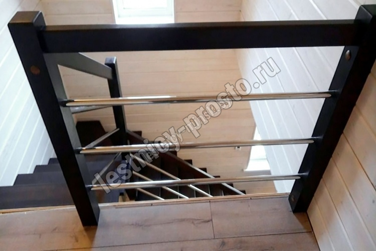 Комплект ограждений для г-образной лестницы PROSTO MONO h337.5 см из 14 ступеней.