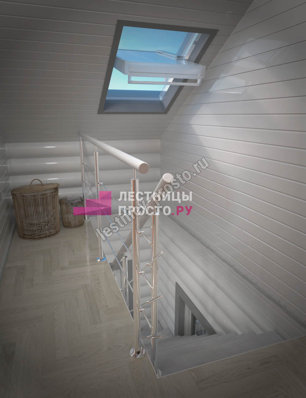 Поворот на 90° реализован посредством поворотных ступеней, высота поворота определяется параметрами вашего помещения и размерами проёма.