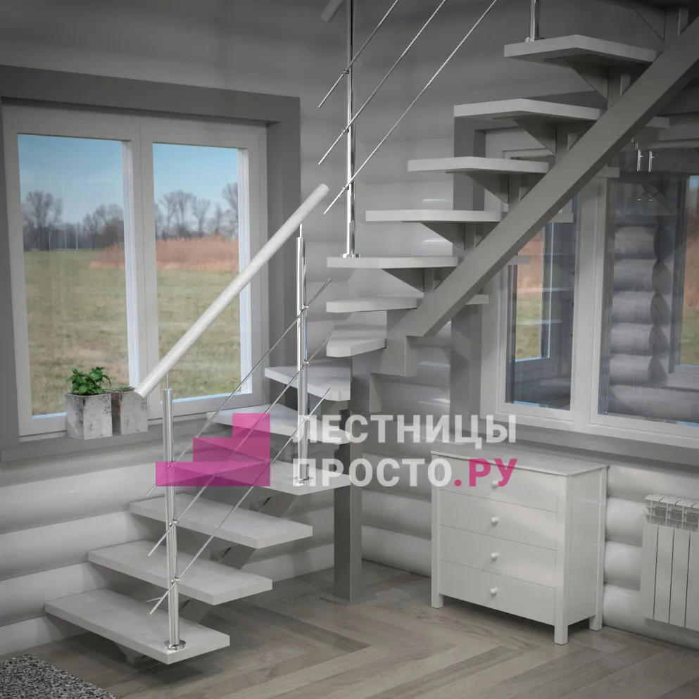 Лестница PROSTO MONO Г-образная h292.5 см, ступени лиственница