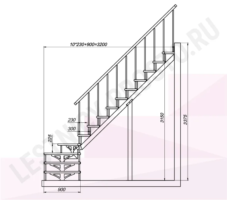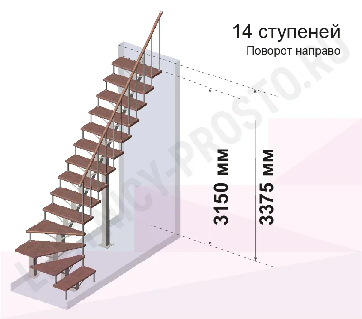 Лестница PROSTO MONO Г-образная h337.5 см, ступени хвоя