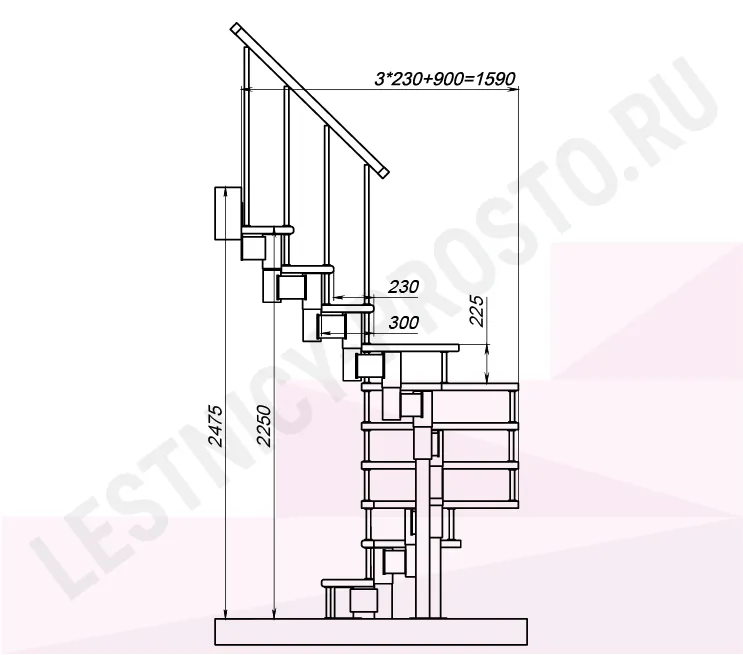 Схема и расчет указаны для шага 225 мм - мы рекомендуем эту высоту шага, как оптимальную для комфортного подъёма и экономии бюджета.