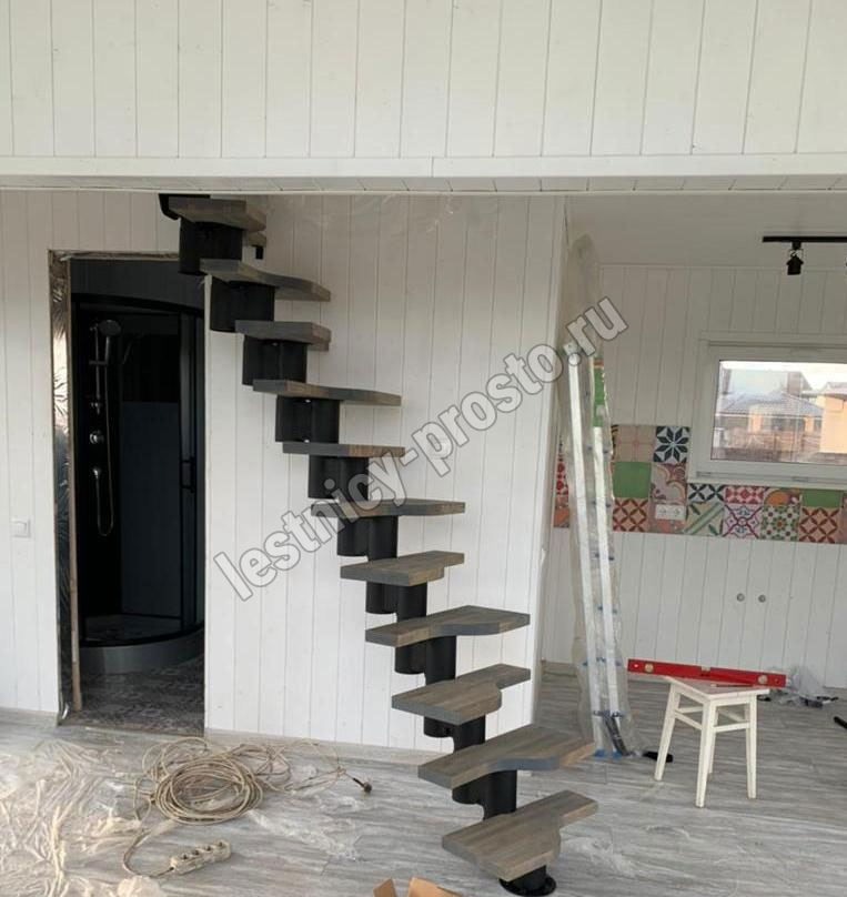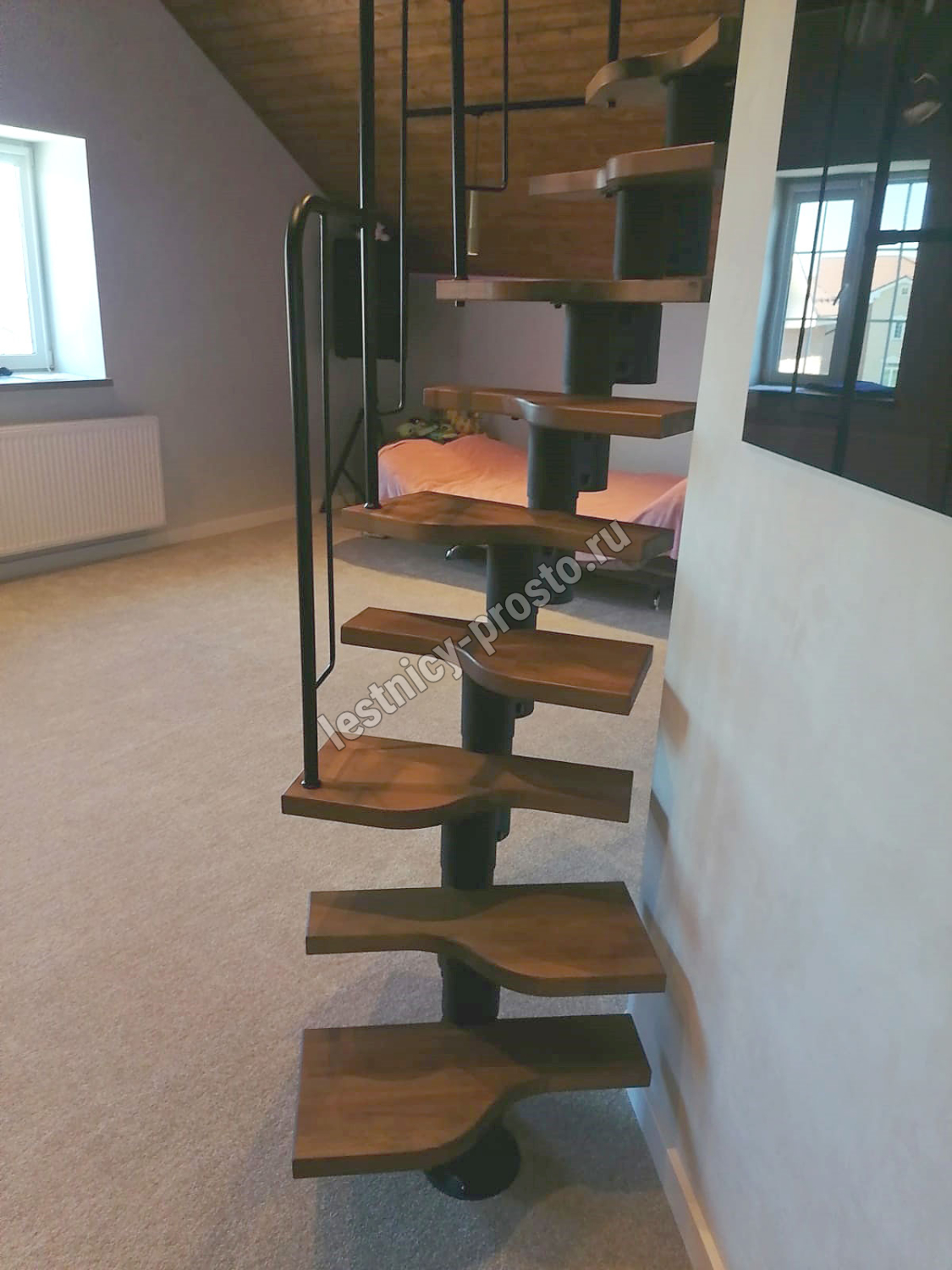 Лестница Prosto Urban Black гусиный шаг 700 мм, h216-312 см (12 ступеней), берёза мультиплекс