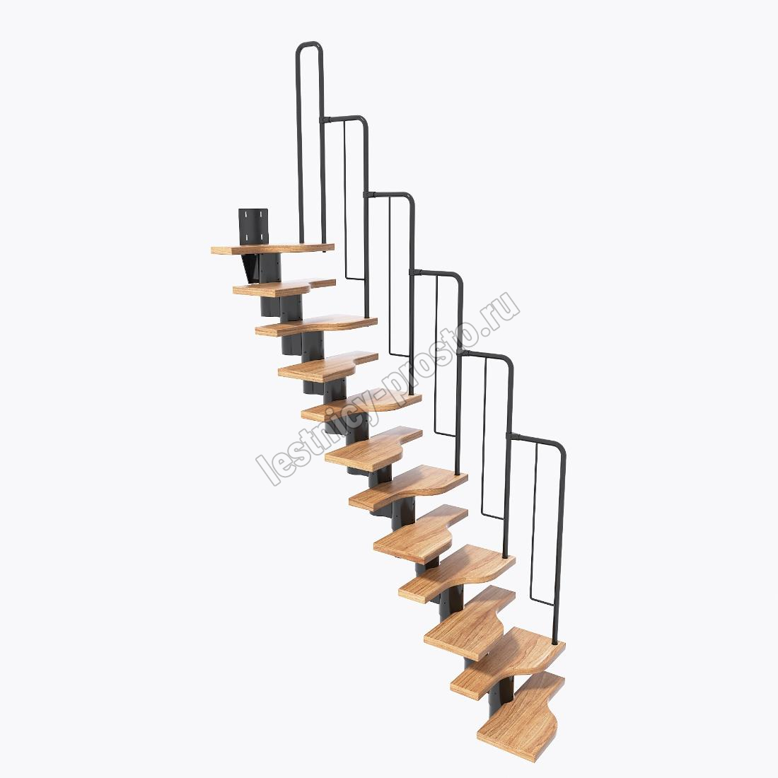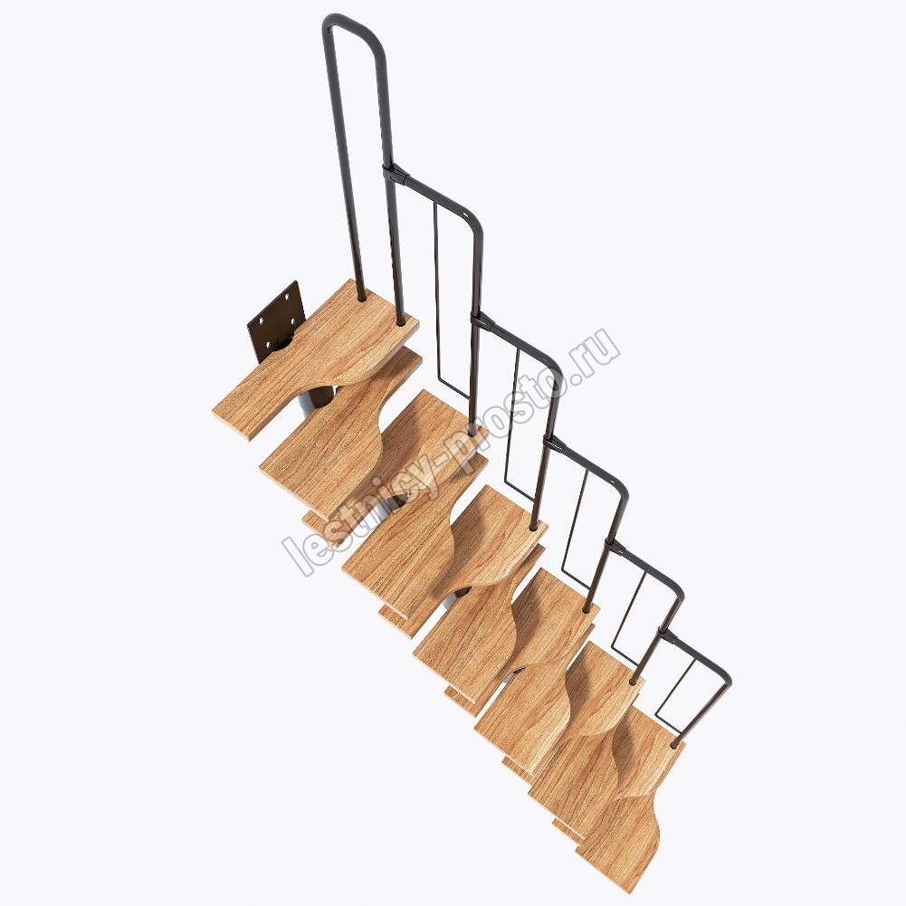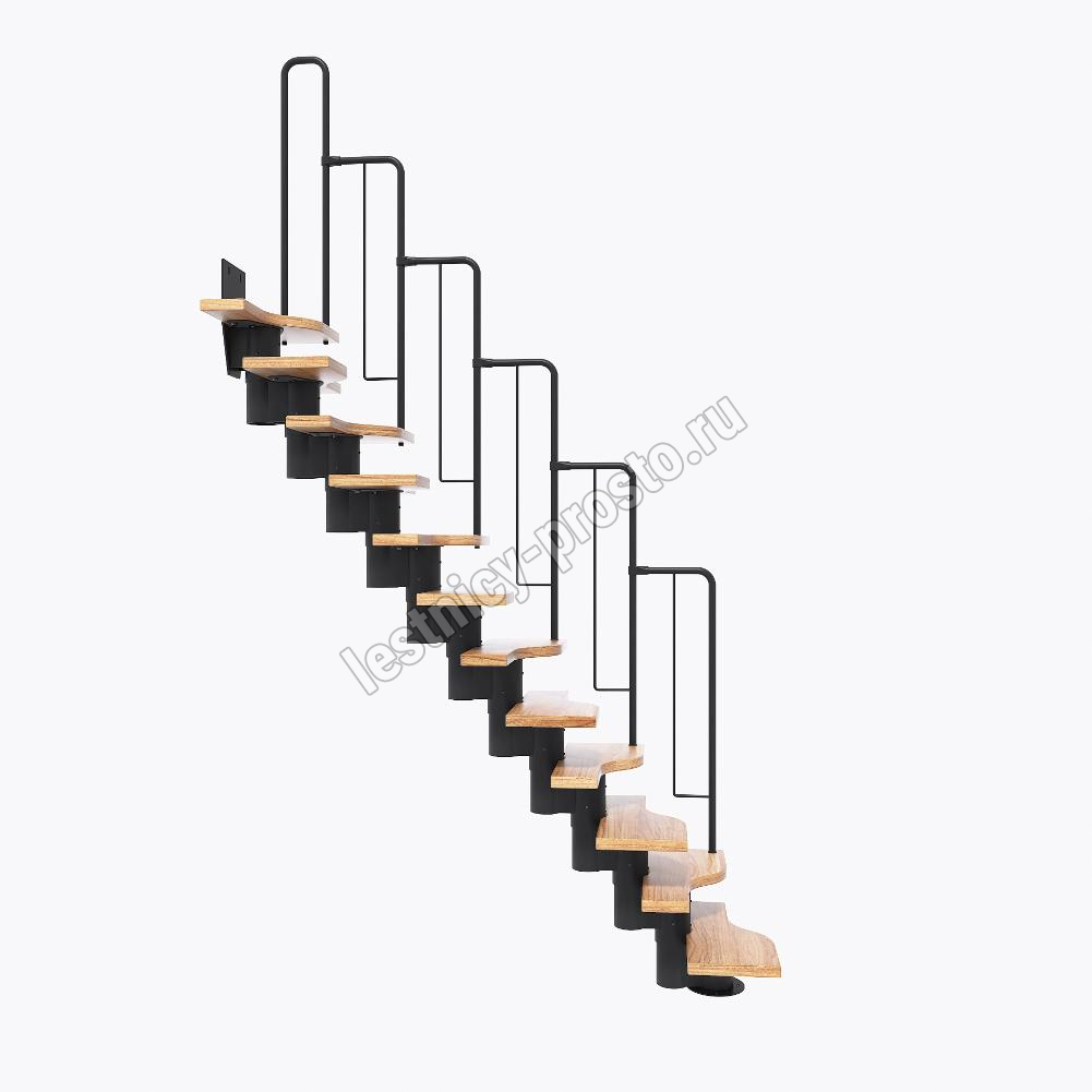 Лестница Prosto Urban Black гусиный шаг 600 мм, h216-312 см (12 ступеней), дуб