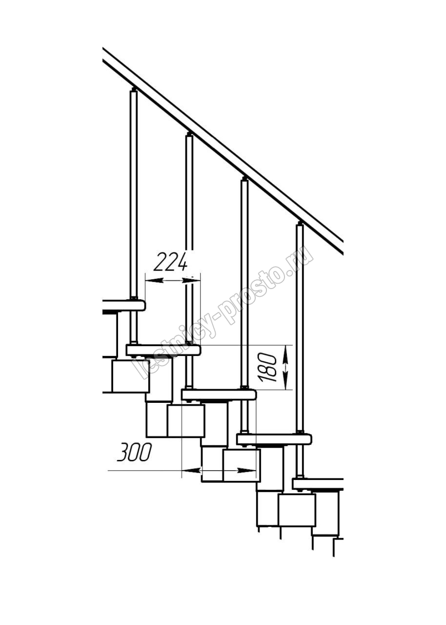 Модульная лестница Фаворит 180 2160-2280, Белый, Сосна, Нержавеющая сталь
