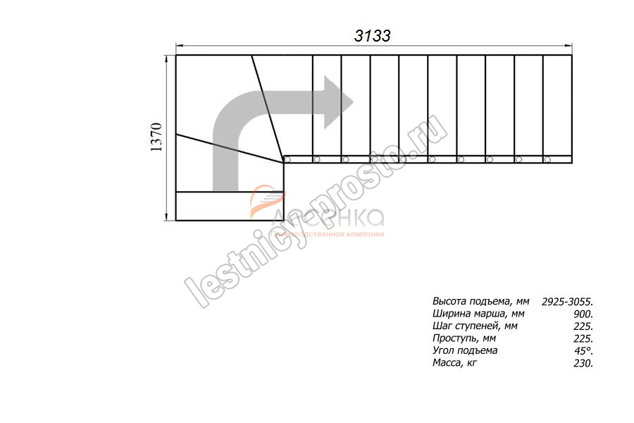 Модульная лестница Фаворит 225 2925-3055, Черный, Лиственница, Крашеная