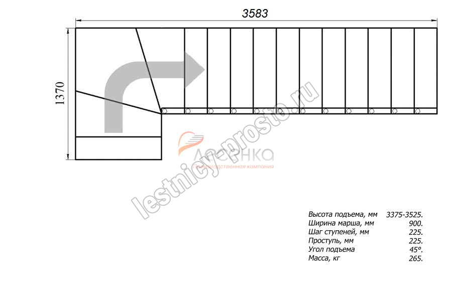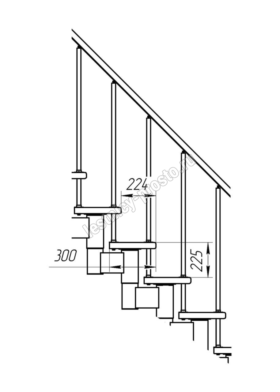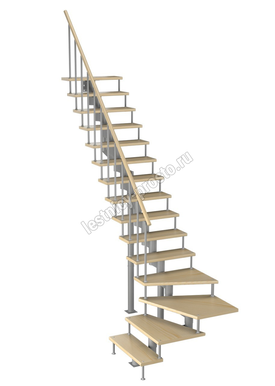 Модульная лестница Фаворит 225 3375-3525, Серый, Сосна, Крашеная