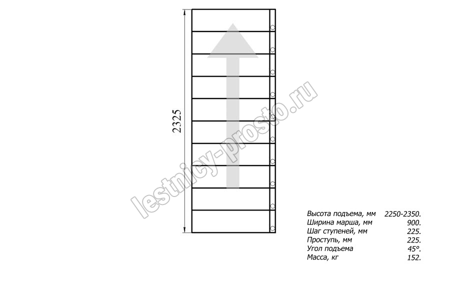 Модульная лестница Стандарт 2250-2350, Серый, Сосна, Нержавеющая сталь