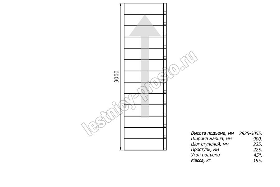 Модульная лестница Стандарт 2925-3055, Серый, Сосна, Нержавеющая сталь