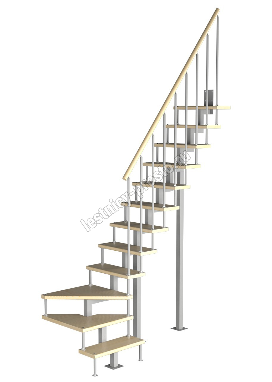 Модульная малогабаритная лестница Компакт 2700-2925, Серый, Лиственница, Нержавеющая сталь