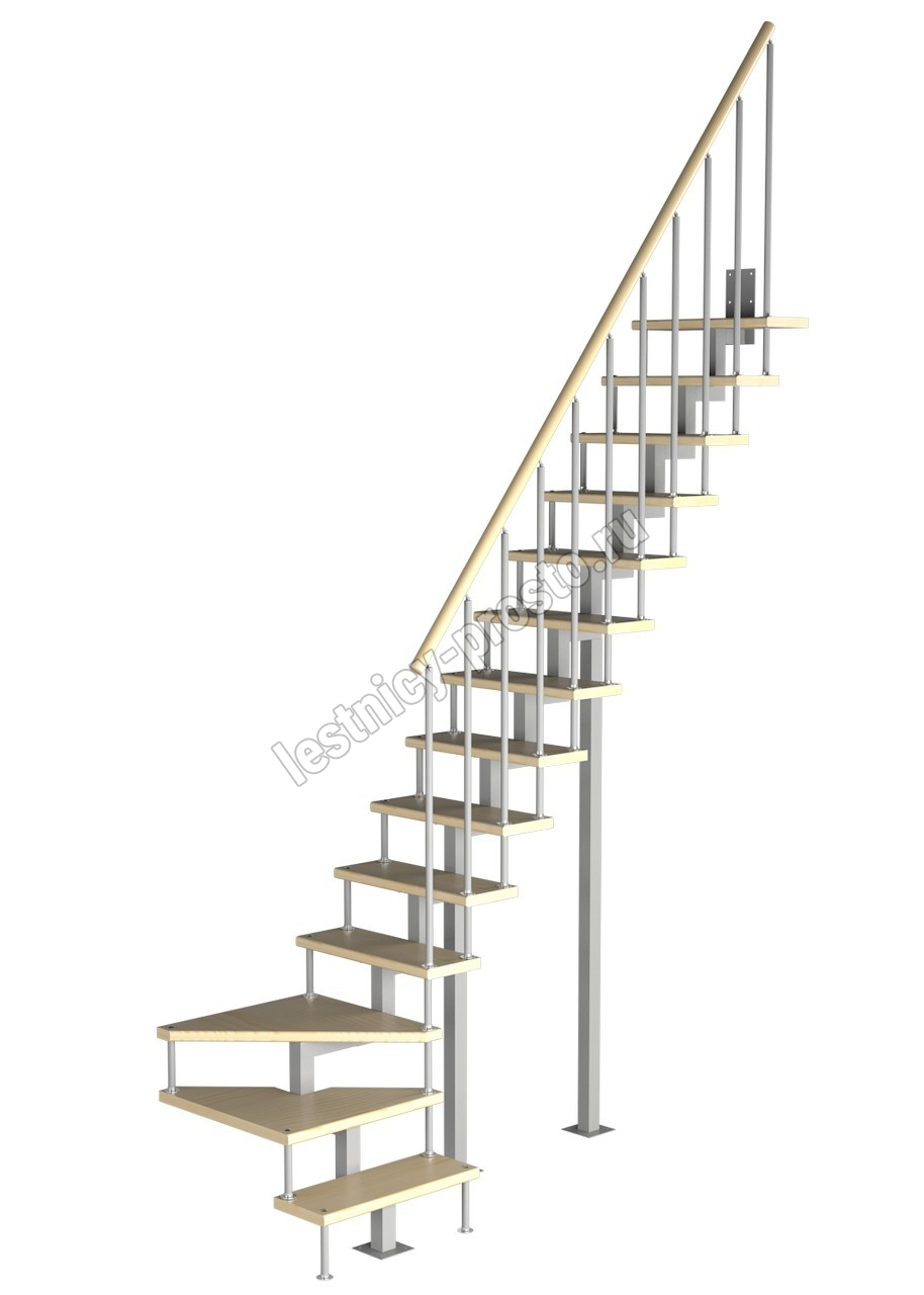 Модульная малогабаритная лестница Компакт 3150-3375, Белый, Сосна, Нержавеющая сталь
