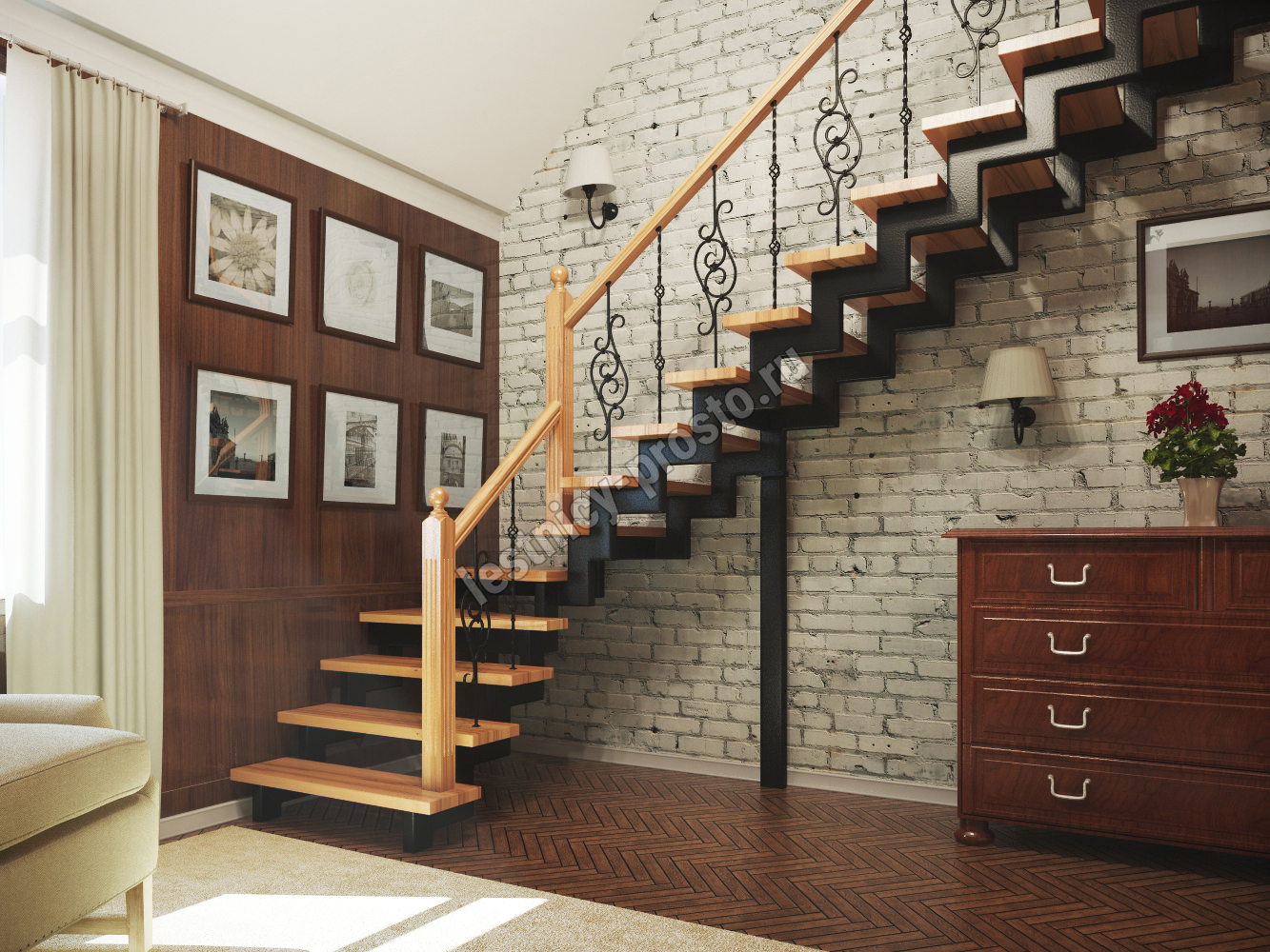 Лестница Prosto Double 50×100 г-образная, ступени из сосны |