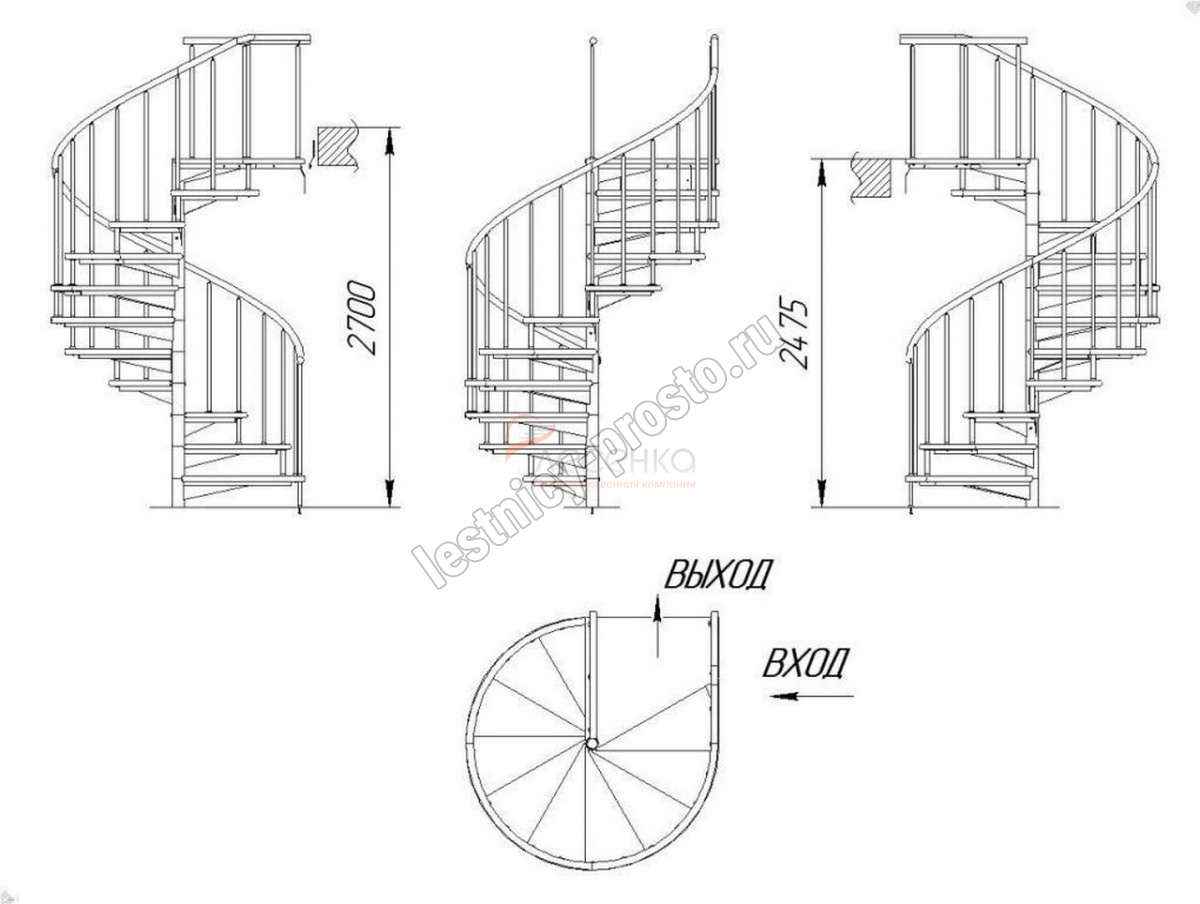 Высота лестницы 2475 - 2700 мм