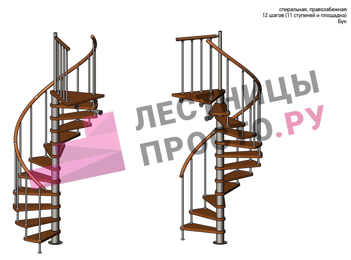 Винтовая лестница Prosto Spiral Black D140см, h260.5-304.6 см, бук