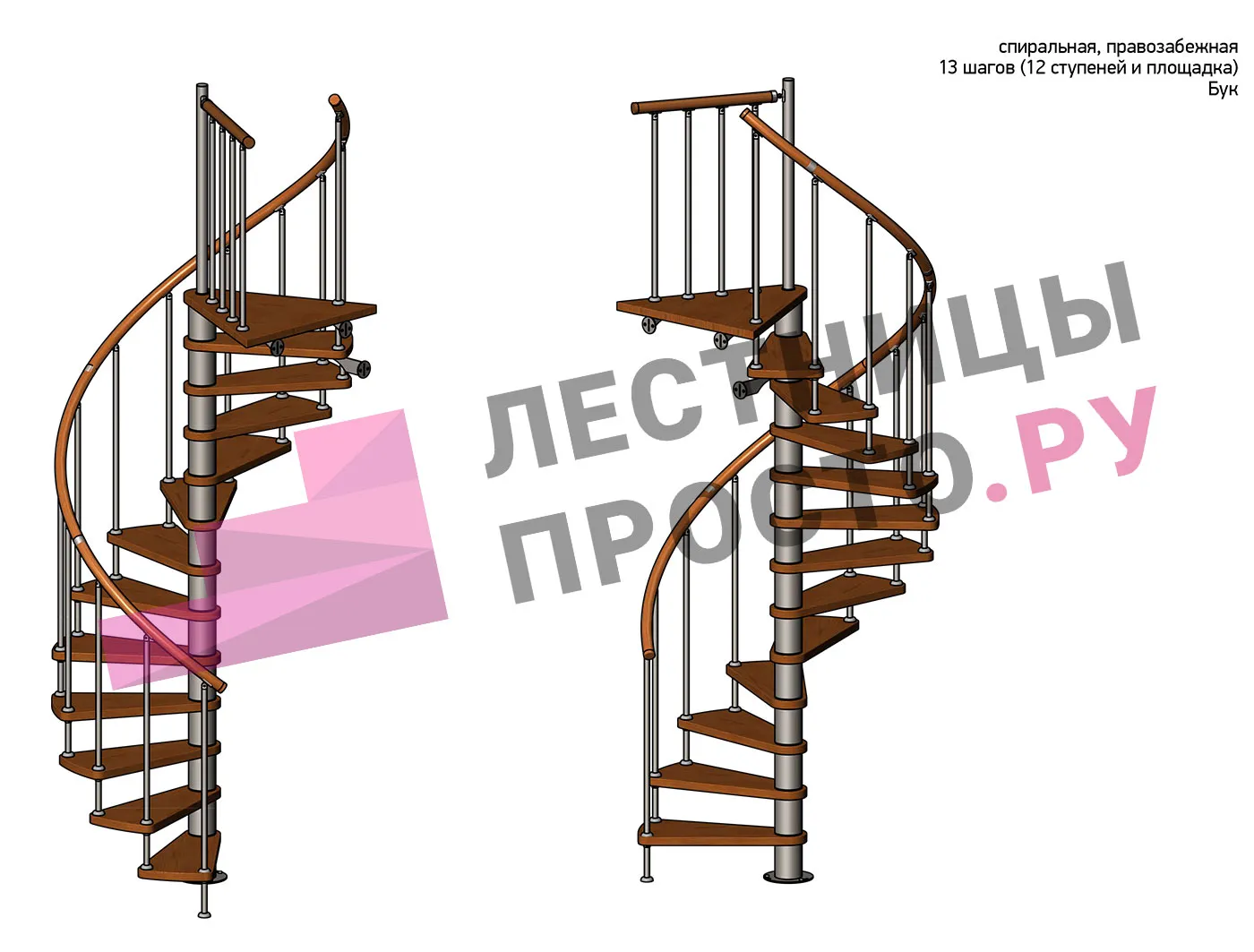 Винтовая лестница Prosto Spiral Black D140см, h282.2-326,3 см, бук