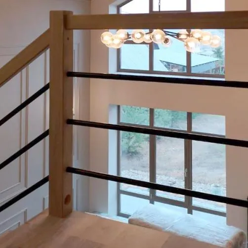 Стальные стойки Ф25мм (по одной на ступень) + ПВХ поручень Ф50.