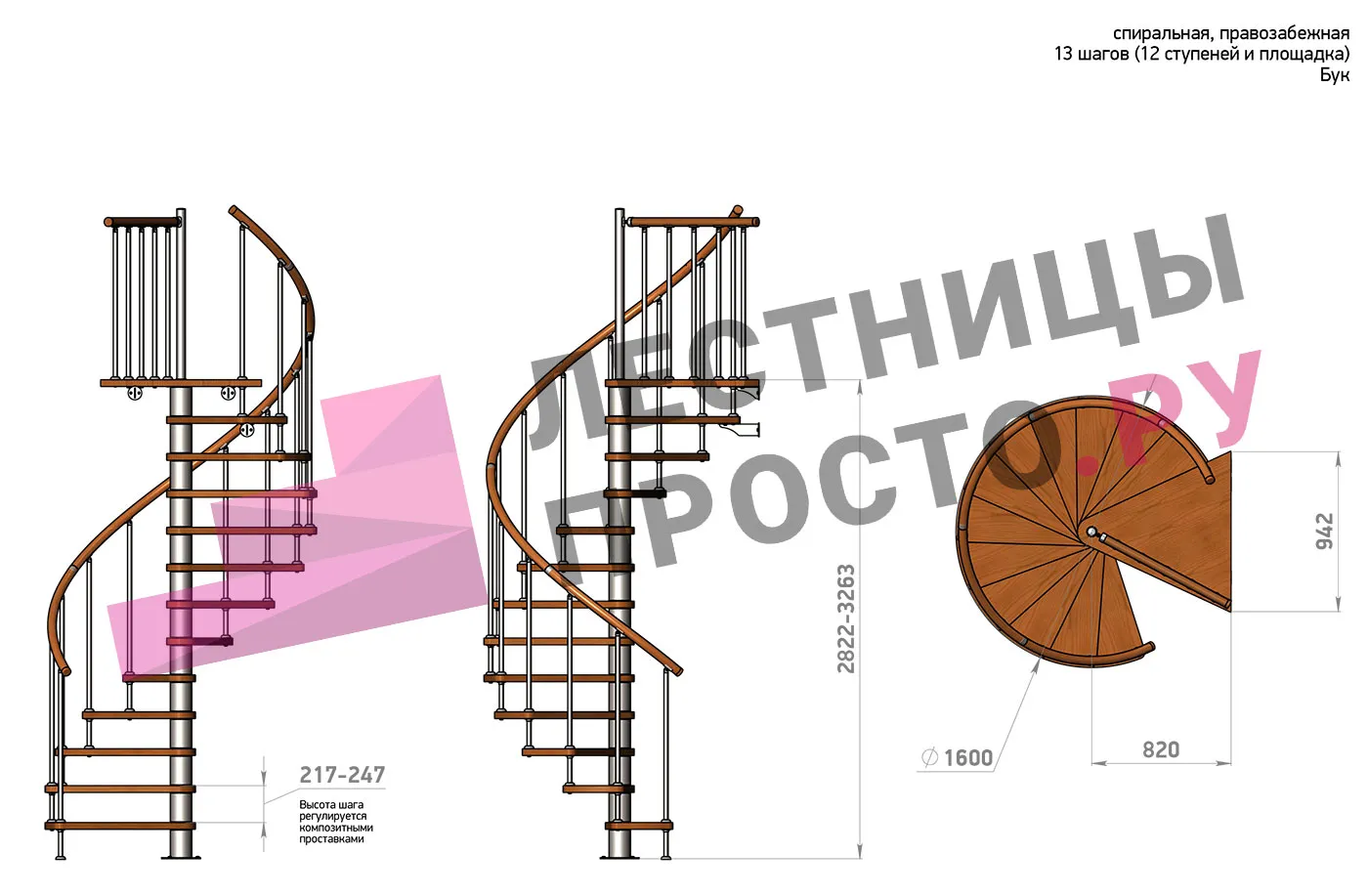 Высота ступеней регулируется с шагом 3 мм. в пределах 217-247 мм., благодаря чему, лестница прекрасно подгоняется под необходимую высоту.