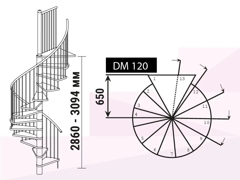 Высота лестницы 2860 - 3094 мм