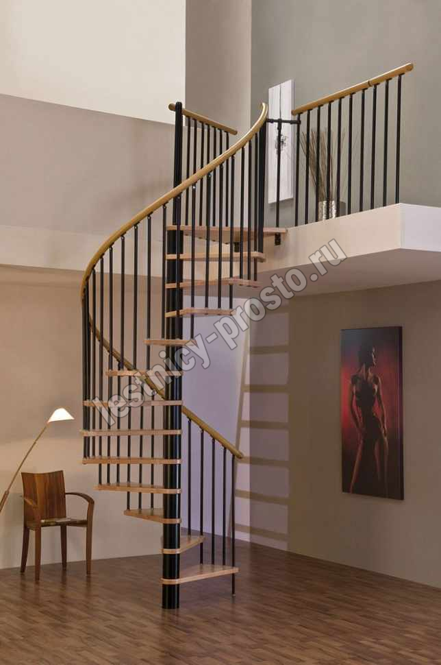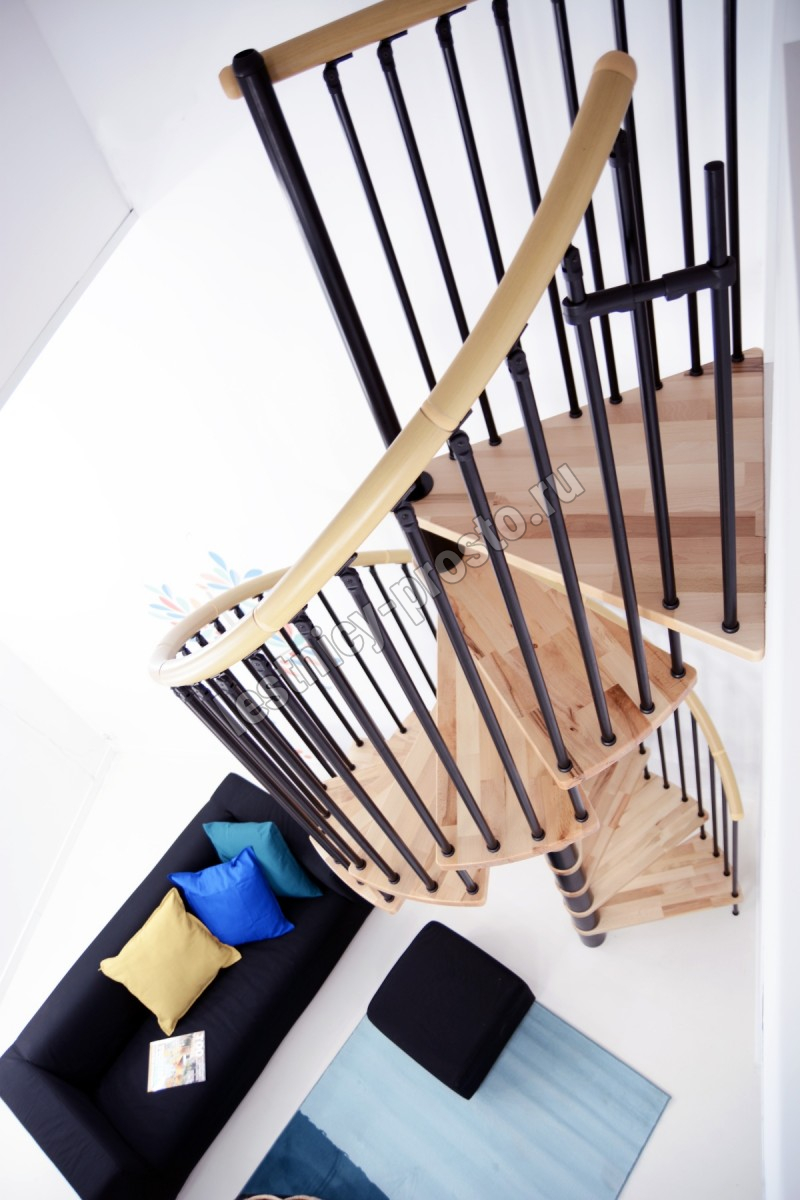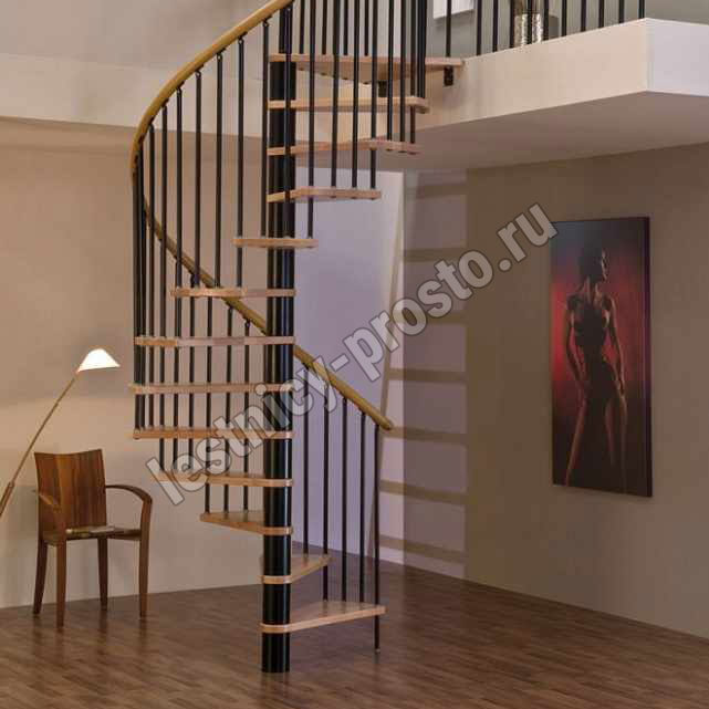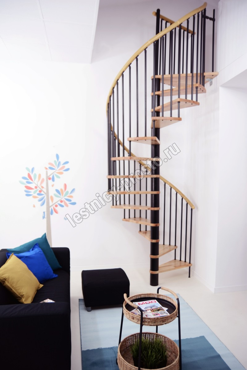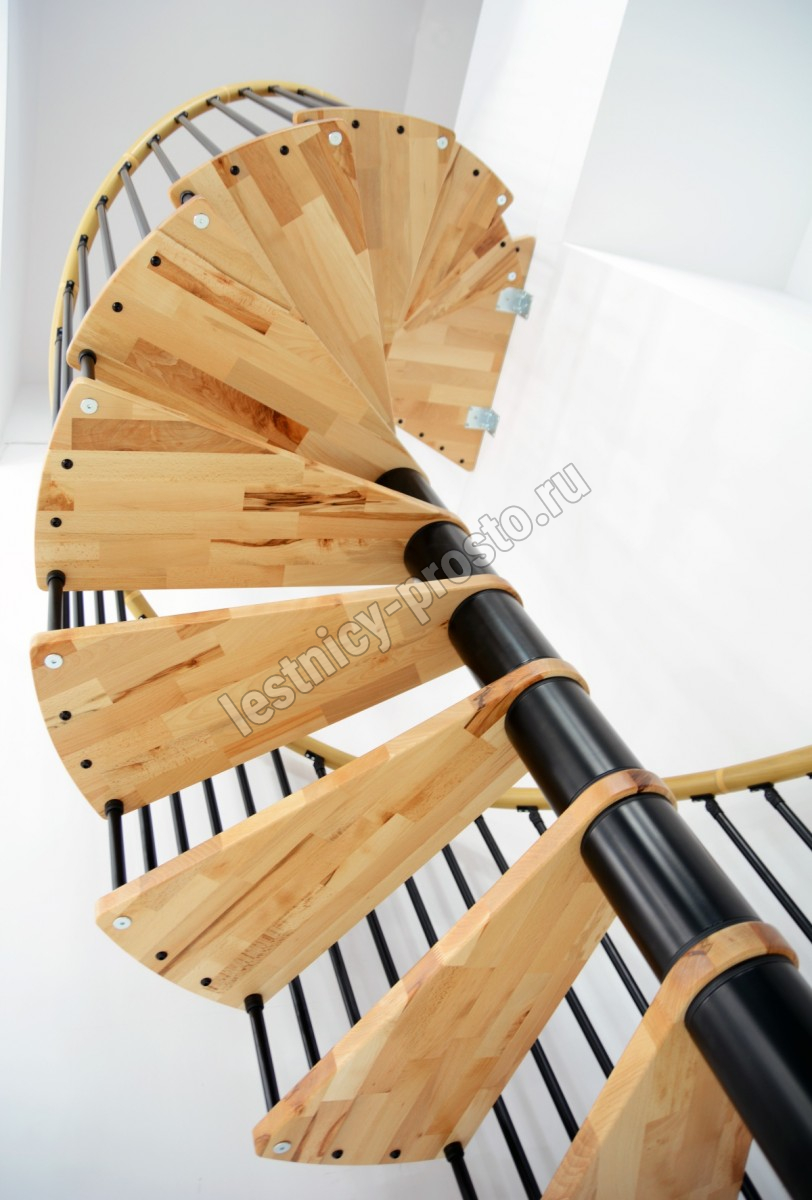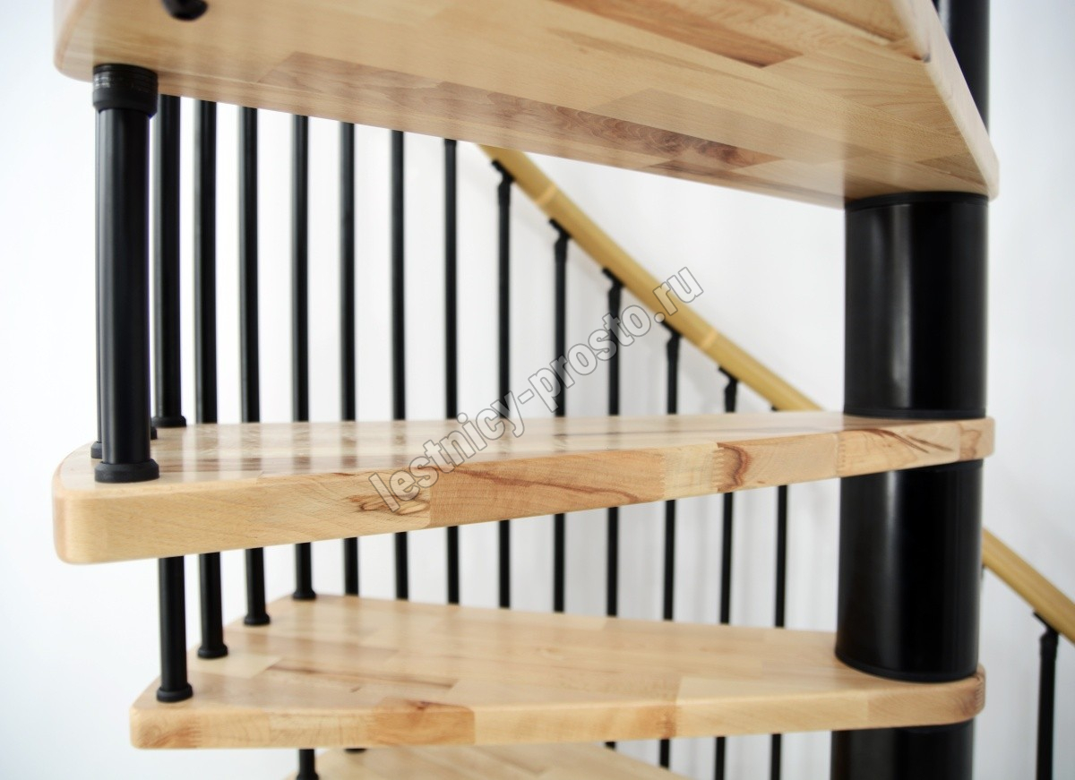 Винтовая лестница SPIRAL WOOD d140 см, чёрная, лакированный бук