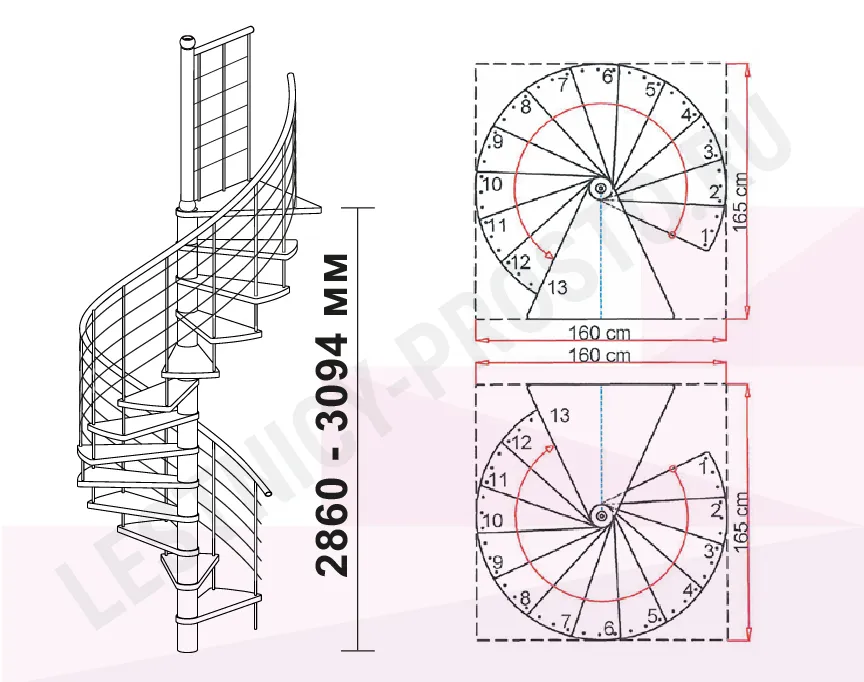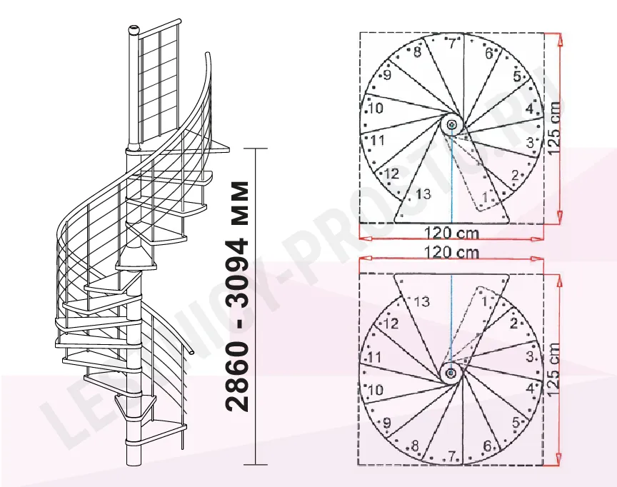 Высота лестницы 2860 - 3090 мм