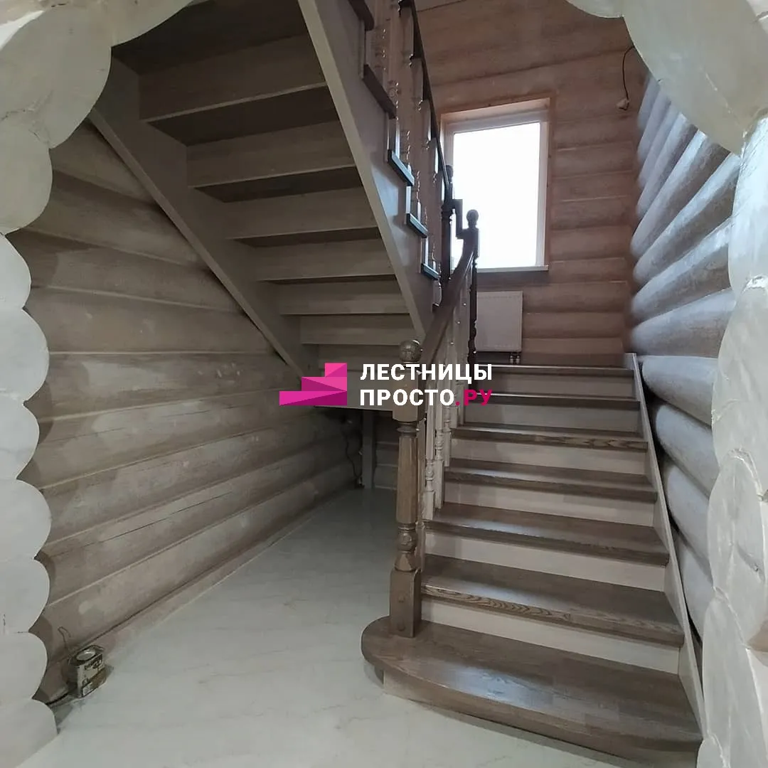 Деревянная лестница по индивидуальному проекту в частном доме LP-2875