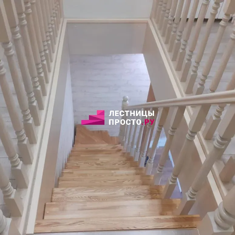 Лестница LP из сосны на второй этаж с поворотом на 180 градусов
