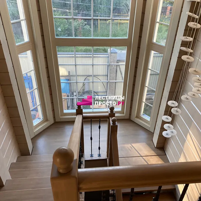 Лестница на центральном каркасе с коваными балясинами ЛП 703